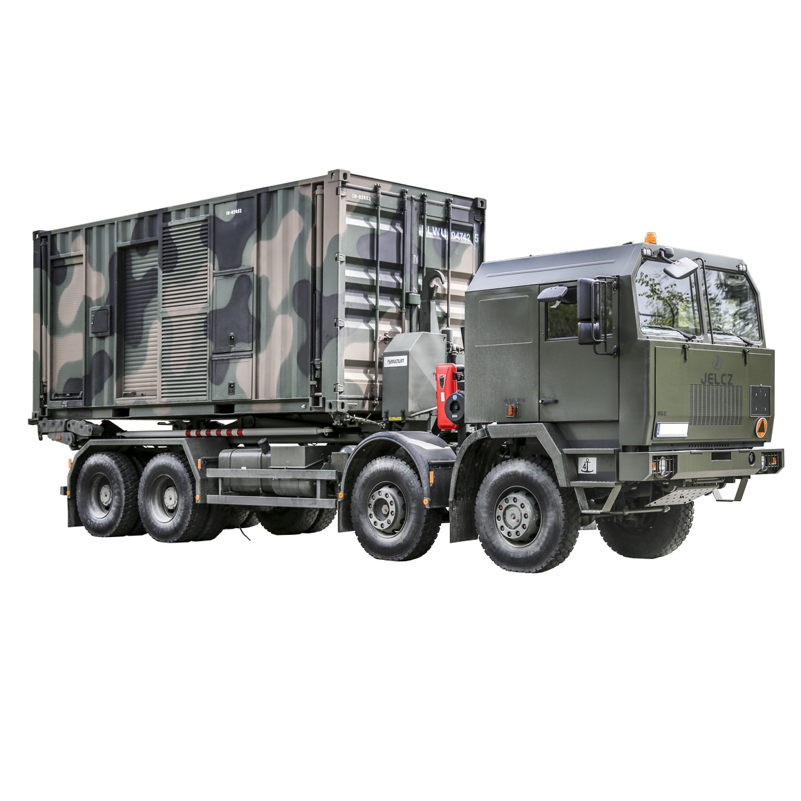 Kontener opcjonalnie wyposażamy w hydrauliczny Samopoziomujący Układ Podnoszenia Kontenera SUPK. Umożliwia on rozładunek / załadunek kontenera na pojazd bez wsparcia dodatkowych urządzeń dźwigowych.
