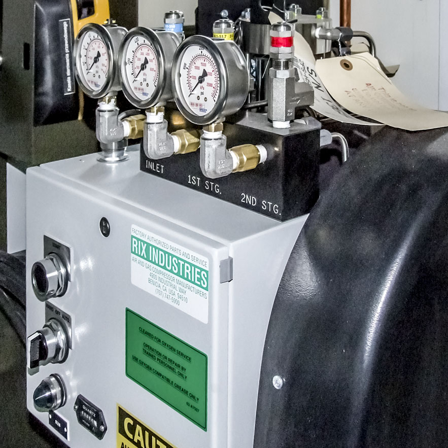 - Sprężarka wysokiego ciśnienia do napełniania butli – 2PS, producent: RIX Industries, Benicia CA, USA – wydajność 50 l/min., ciśnienie 155 bar, moc 1,1 kW,