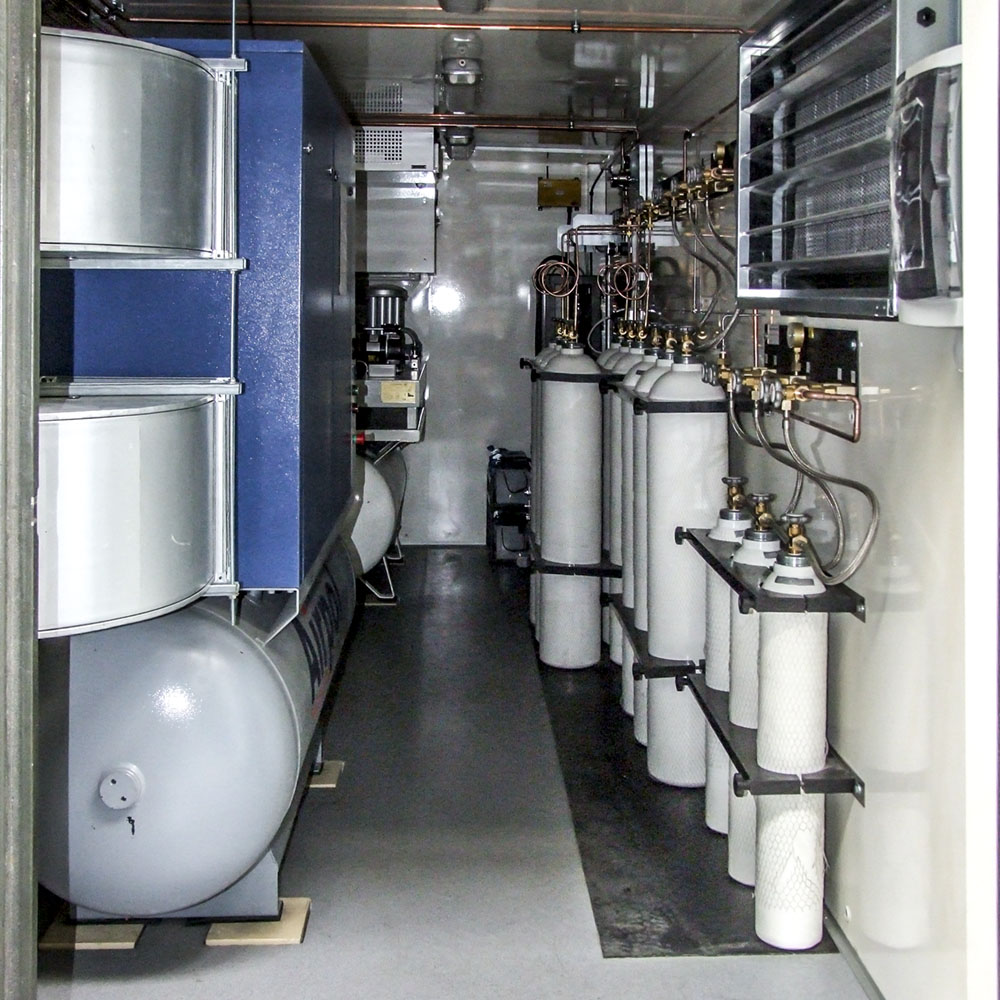 Kontenerowa Stacja Gazów Medycznych wyposażyliśmy w następujące urządzenia: