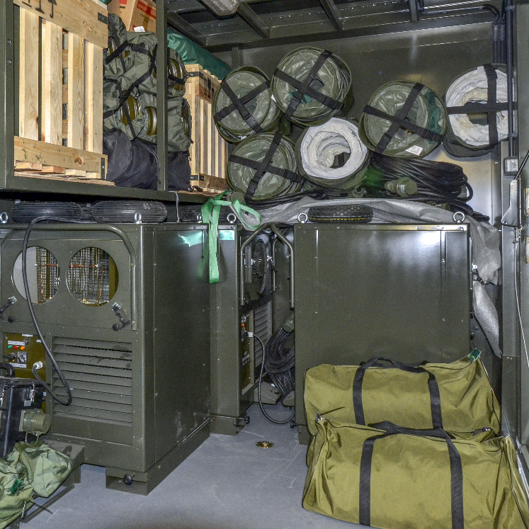 Kontener Logistyczny KL 20 m.in. stanowi element wyposażenia Zespołów Zabezpieczenia Medycznego i służy do transportu namiotów i innych elementów wyposażenia Sal Opatrunkowych Poziomu I SOP I.